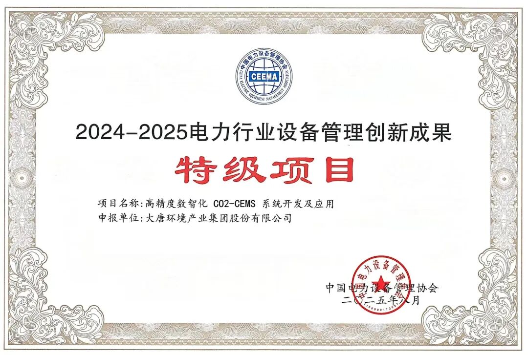 本网讯 近日,研究院承担的集团重点科研项目“高精度数智化CO2-CEMS系统开发及应用”项目荣获2024-2025电力行业设备管理创新成果特等奖。